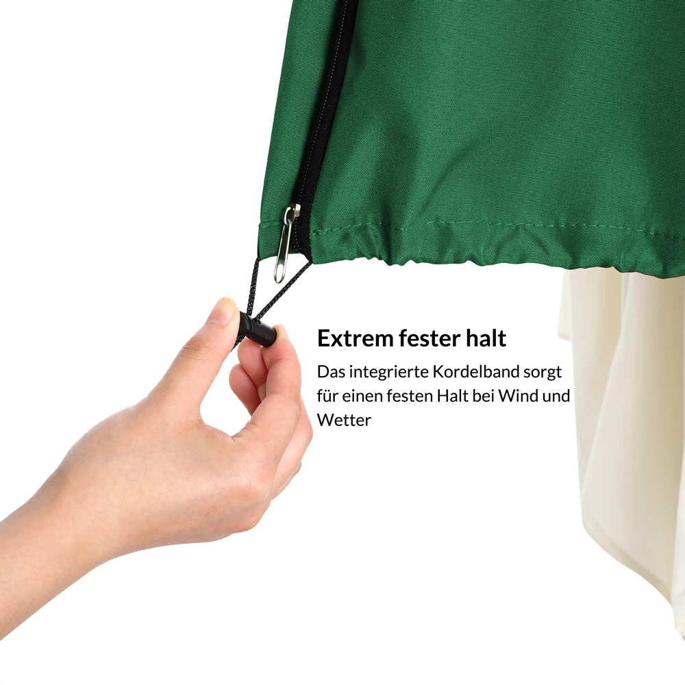 Die Schutzhülle mit Reißverschluss aus 160 g/m² Polyester bewahrt Ihren Sonnenschirm vor Feuchtigkeit, Schmutz, Frost und Staub.
