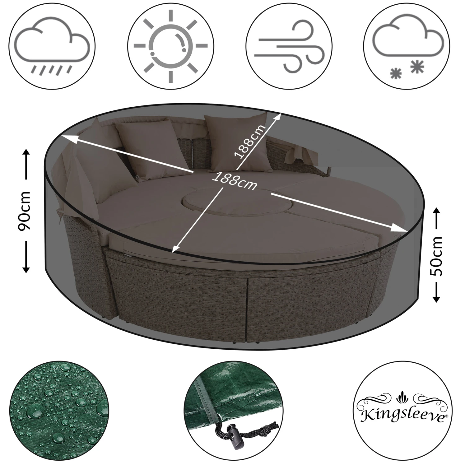• Maße (Ø/H): 188 x 90-50 cm – rund