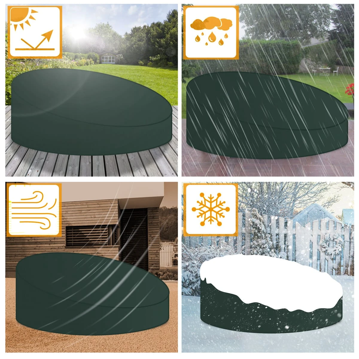 Das Ganzjahresprodukt ist UV-beständig, stabil, reißfest und einfach anzubringen. Bei Verschmutzung kann die Abdeckung einfach mit einem Tuch abgewischt werden.