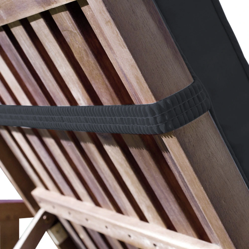 Das besondere 5-lagige-Sandwichsystem und eine PolsterstĂ€rke von 5cm sorgen fĂŒr den perfekten Liegekomfort und laden zum entspannten Verweilen ein. Mit den optimalen Abmessungen passen die Kissen auf alle gĂ€ngigen Deckchair und Sonnenliegen. Dank seitlich angebrachten HaltebĂ€nder und elastischem RĂŒckhalteband lĂ€sst sich das lĂ€stige Verrutschen der Polster leicht verhindern.