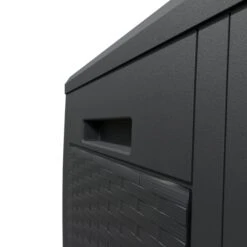 Die wetter- und UV-beständige Auflagenbox mit einem Volumen von 310 Litern bietet ausreichend Platz. Sie besitzt Rollen zum einfachen Bewegen, drei Griffe und ist leicht zu montieren.