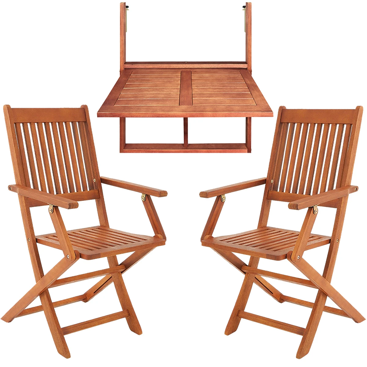Balkon-Set inkl. 1 Hängetisch und 2 Stühlen Sydney von CASARIA aus massivem, vorgeöltem Akazienholz – Ideal für kleine Balkone!