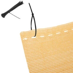 Der Saum ist mit Knopflöchern versehen und kann mit den mitgelieferten 50 Kabelbindern sicher am Zaun oder dem Balkongeländer angebracht werden.
