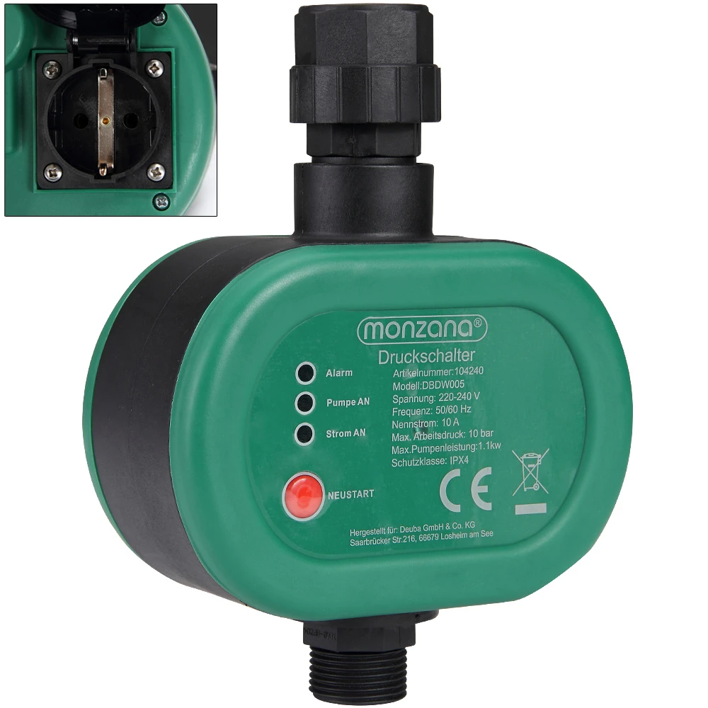 Dieser Druckschalter steuert und automatisiert das Ein- und Ausschalten einer Kreisel- bzw. Tauchpumpe und sorgt für einen konstanten Wasserdruck.