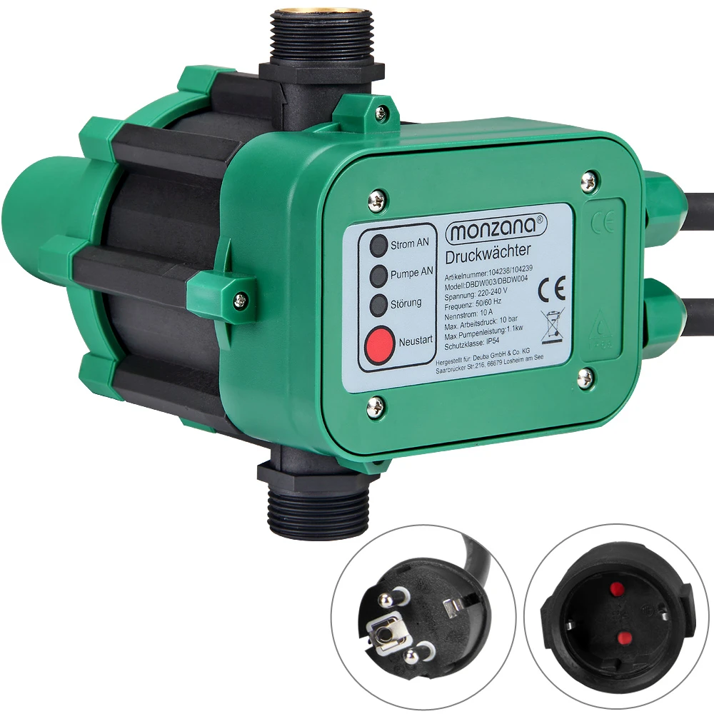 Der Leitungsdruck im angeschlossenen System wird durch den Druckschalter überwacht. Die Wasserpumpe wird automatisch gestartet und gestoppt in Abhängigkeit vom Öffnen und Schließen des Verbrauchers.