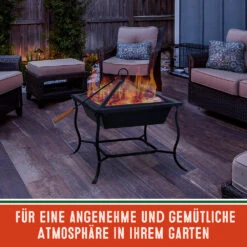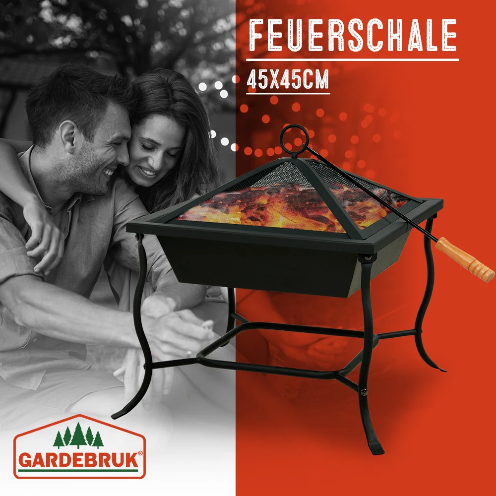 Mit dem mitgelieferten Funkenfluggitter können Sie in Ruhe das Feuer genieĂen. Besonders praktisch ist der Feuerhaken.