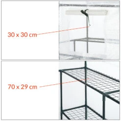 Die Folie lässt immer genügend Sonnenlicht durch und speichert außerdem Feuchtigkeit und Wärme. Sollte es zu heiß werden, öffnen Sie einfach den Reißverschluss von Tür und Fenster und rollen diese auf. So wird eine ideale Luftzirkulation gewährleistet. Die Fenster haben zusätzlich Fliegengitter um Insekten fernzuhalten.