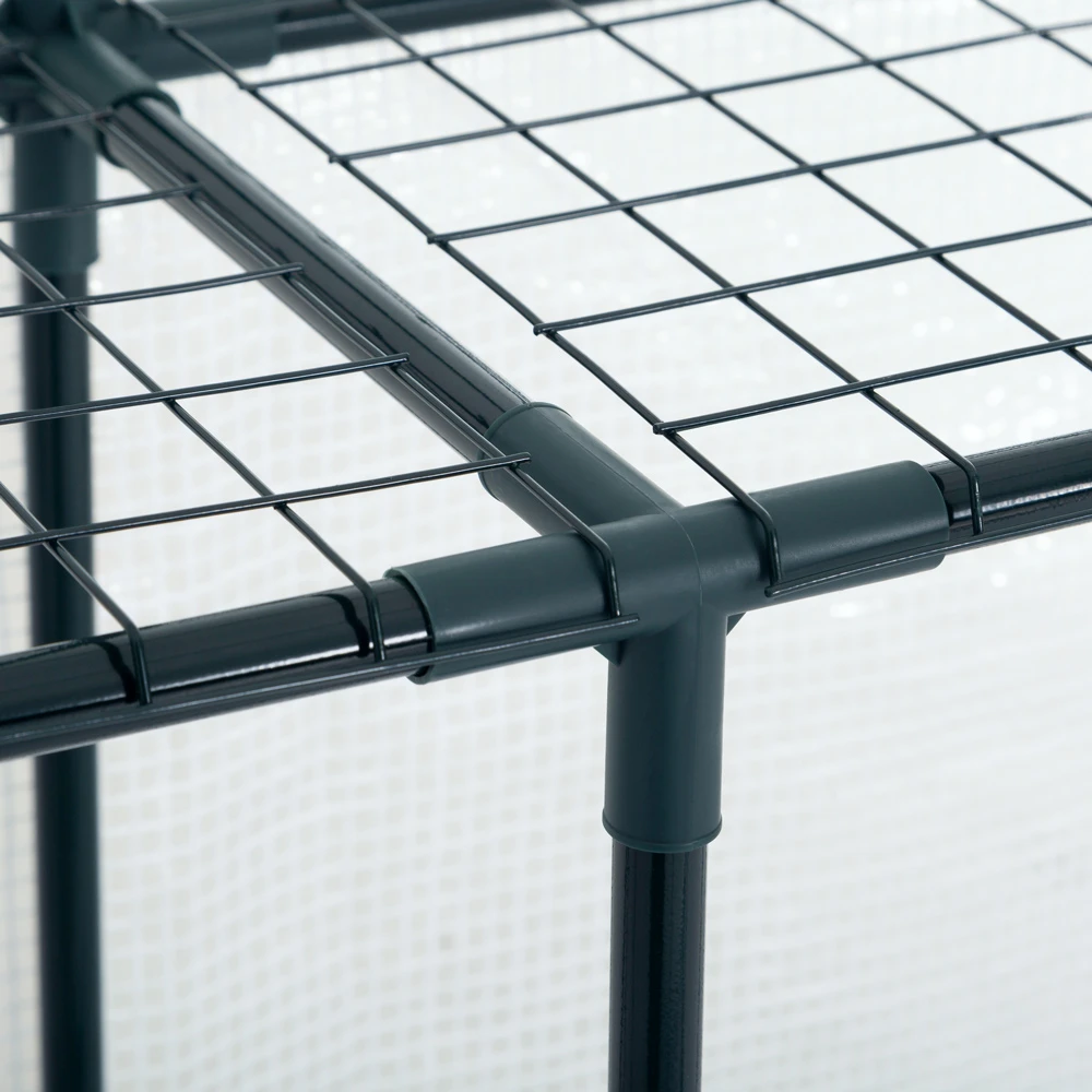 Im Inneren bieten 2 Steckregale mit je 4 Ablagen viel Platz für Pflanzen. Die Regalböden können jeweils mit bis zu 10 kg belastet werden.