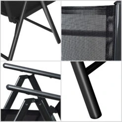 Die Aluminium-Sitzgruppe besteht aus 1 Tisch und 4 klappbaren Hochlehnern mit verstellbaren RĂĽckenlehnen.