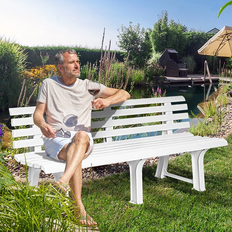 Die Gartenbank Orchidea von CASARIA® besteht aus strapazierfähigem wetterbeständigen Kunststoff.