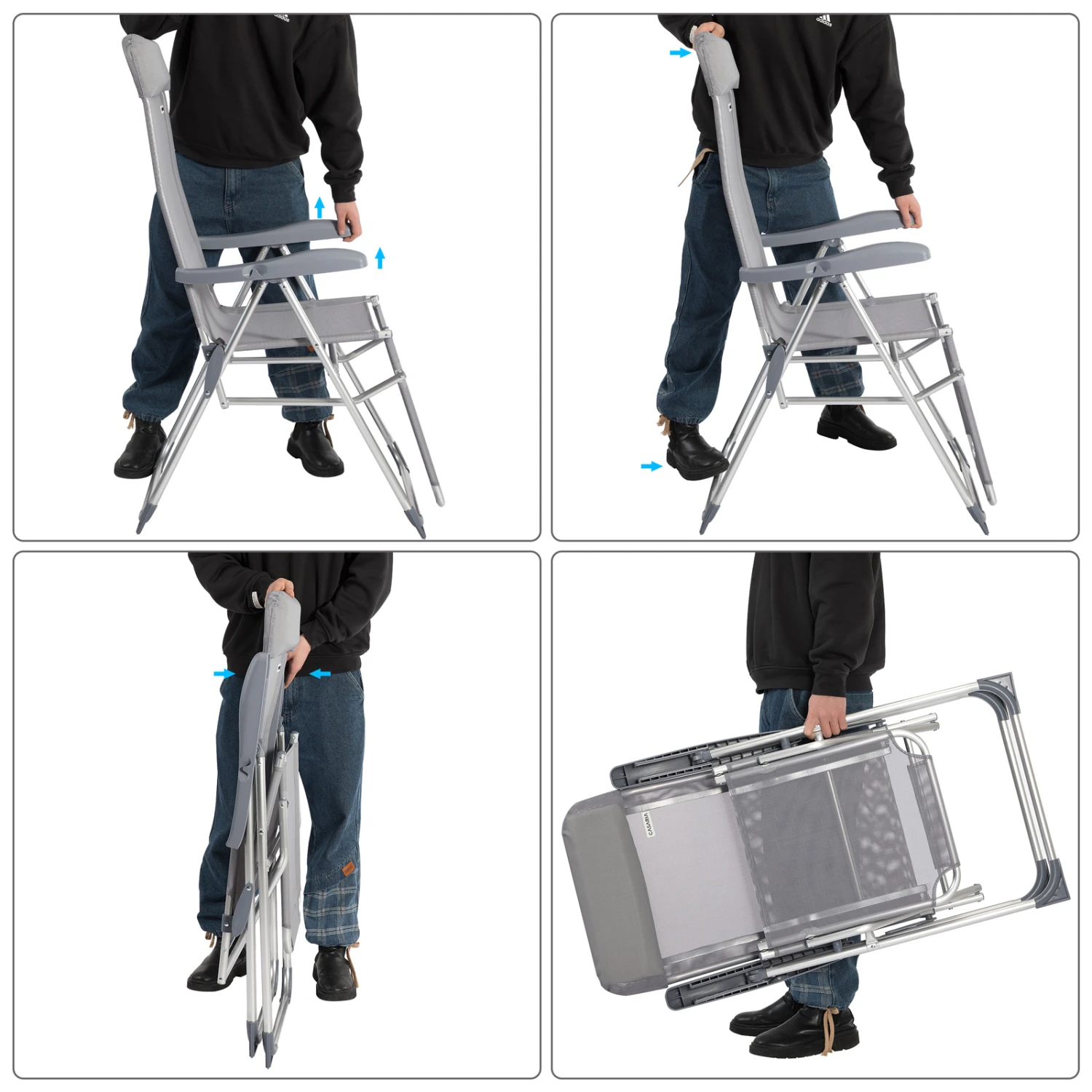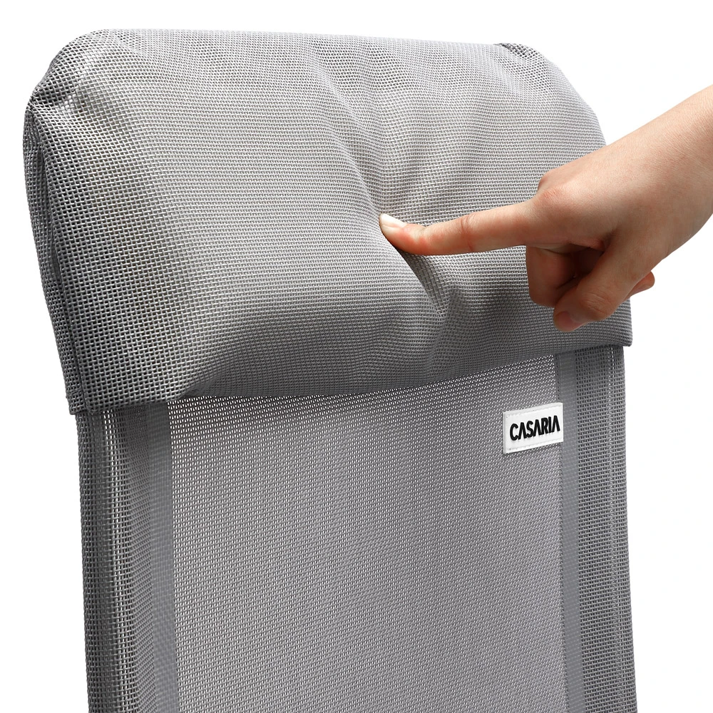 Die Hochlehner sind 5-fach verstellbar und bestehen aus einem hochwertigen Aluminiumrahmen. Der Kopfbereich ist mit einem bequemen Polster ausgestattet.