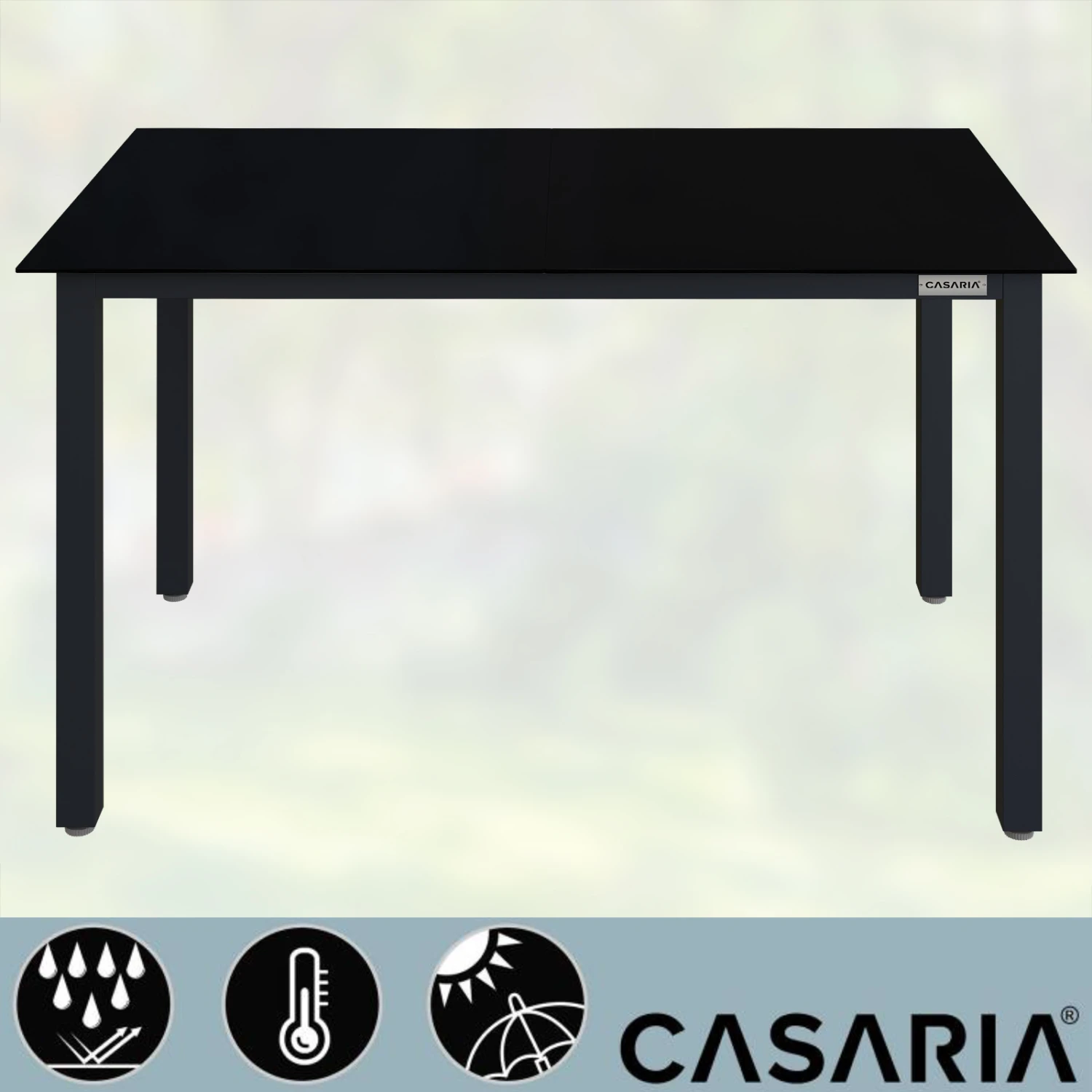 Der Gartentisch ist aus pulverbeschichtetem Aluminium inklusive rostfreien Edelstahl-Schrauben gefertigt, wodurch der Tisch extrem wetterfest ist und ideal für Garten, Terrasse oder im Haus geeignet ist.