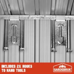 Mit den zusätzlichen 4 Haken können sie bequem ihre Gartengeräte wie Schaufeln, Rechen, Astscheren etc. bis zu 15 kg aufhängen.