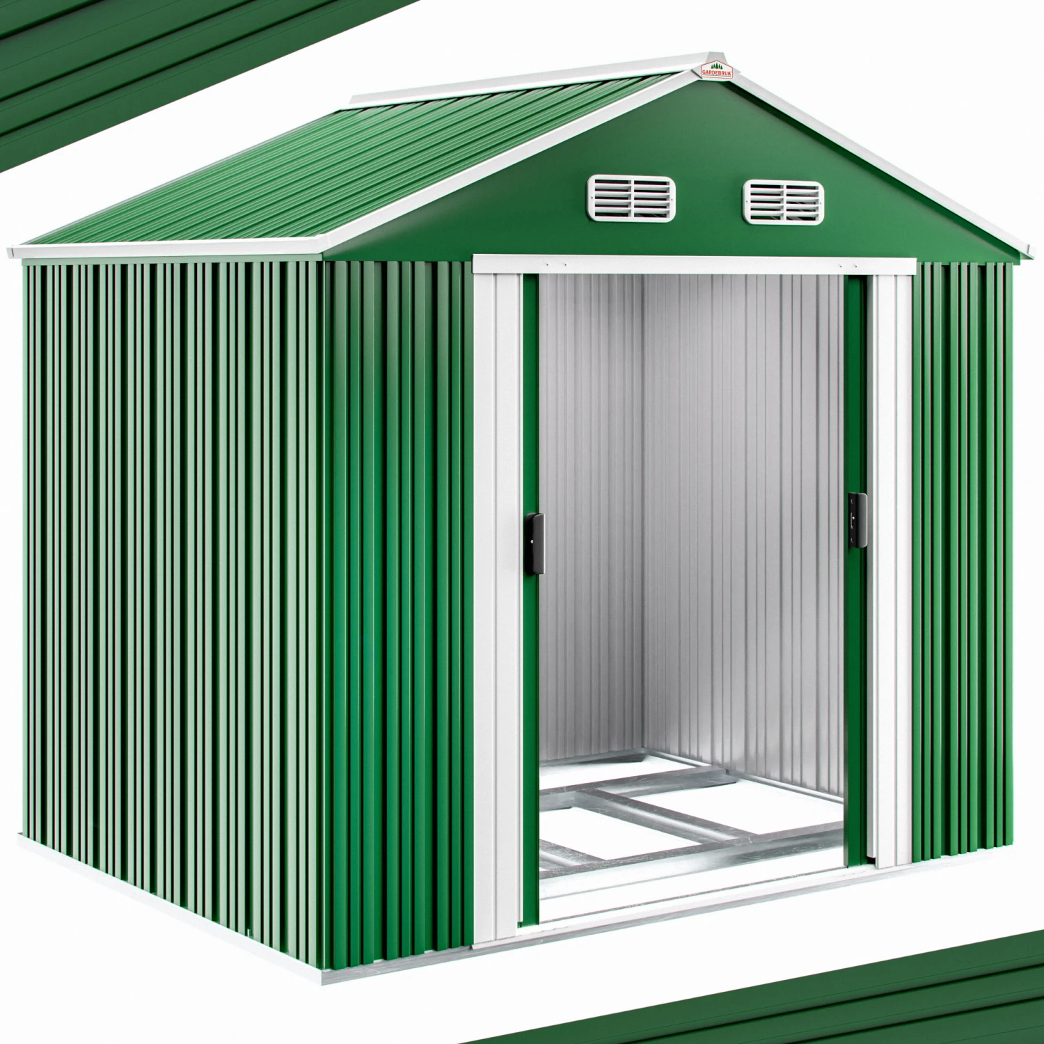 In diesem Gerätehaus sind Ihre Gartengeräte sicher verstaut. Der verzinkte Bodenkranz ermöglicht zudem die Montage eines Holzbodens (dieser ist nicht im Lieferumfang enthalten).Das Gartenhaus bietet Platz für Fahrräder, Werkzeuge und andere Gartenutensilien. Es besitzt außerdem eine zweigeteilte Schiebetür, 4 Belüftungsöffnungen an der Oberseite (jeweils 2 x vorne und hinten) und wird inklusive Bodenleiste geliefert.