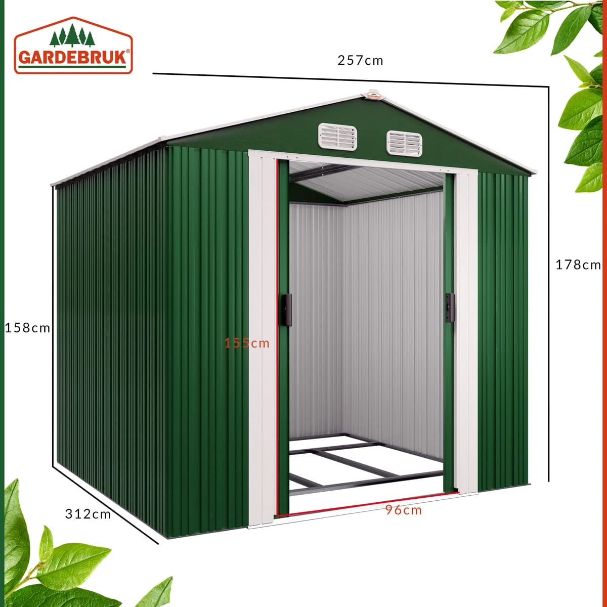 In diesem Gerätehaus sind Ihre Gartengeräte, Fahrräder, Werkzeuge und andere Utensilien sicher verstaut. Der verzinkte Bodenkranz ermöglicht Ihnen die Montage eines Holzbodens (nicht im Lieferumfang enthalten).