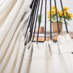 Mit der 360° Komfort-Drehwirbel-Aufhängung an einem massiven Stahl-Haken kann der Hängesessel individuell ausgerichtet und in alle Richtungen geschaukelt werden.