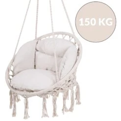 Mit der stilvollen Farbe, der raffinierten Makramee-Knüpftechnik und dem zeitlosen Boho-Design kann das Allroundtalent sowohl im Haus als auch draußen zum Relaxen eingesetzt werden und stellt eine tolle Ergänzung für bereits vorhandene Gartenmöbel dar.