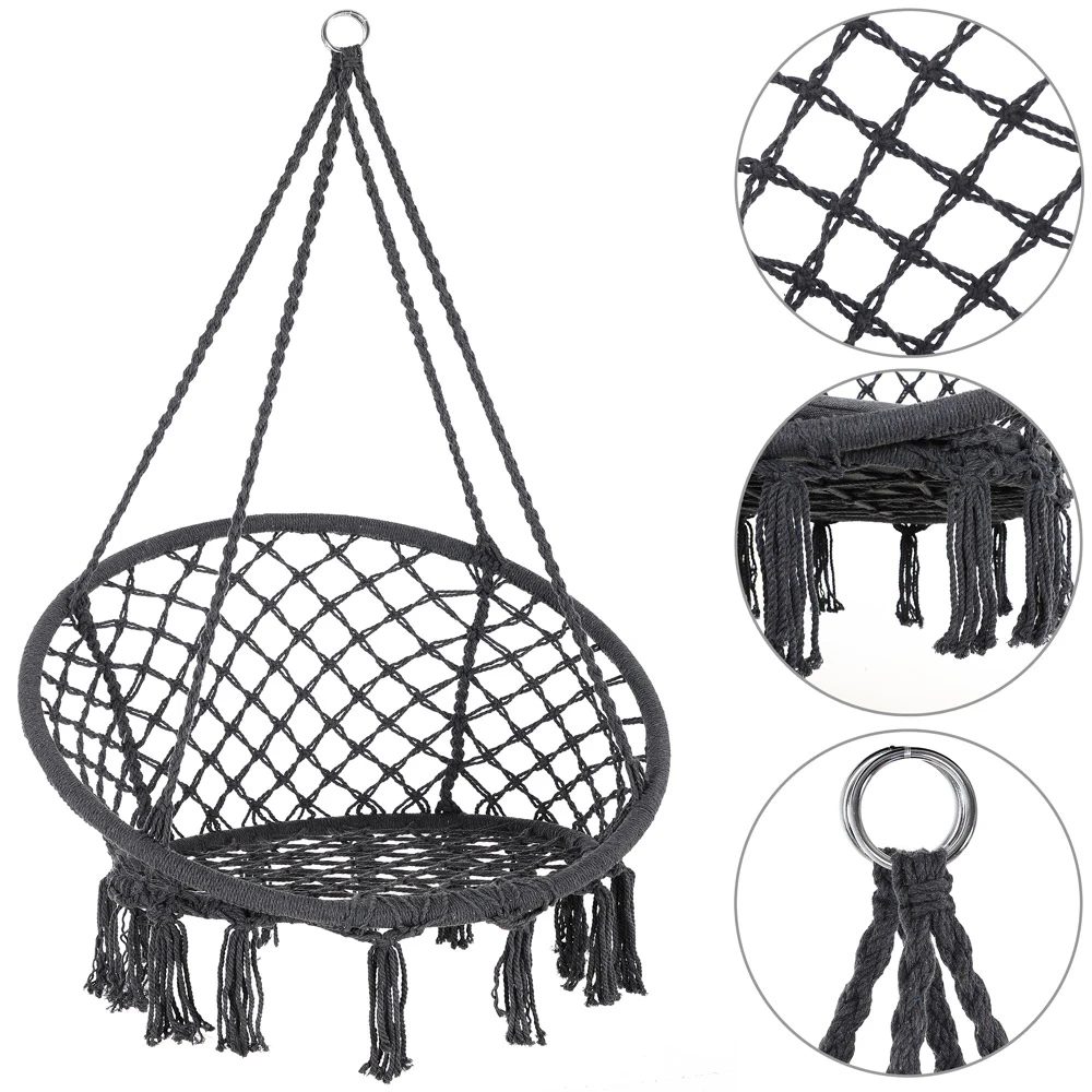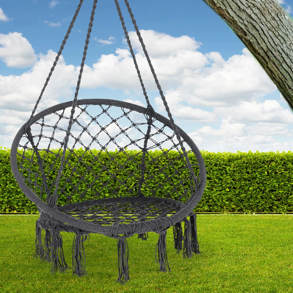 Der Hängesessel der Marke Detex® kann mit bis zu 150 kg belastet werden. Er lässt sich dank der Aufhängung einfach auf- und abbauen und überall hin mitnehmen. Er ist für drinnen und draußen geeignet und bietet sich somit als moderner Sessel im Haus oder bequeme Schaukel im Garten an.