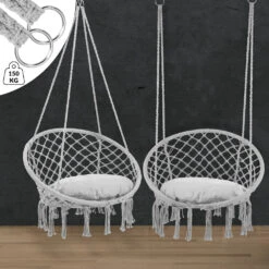 Der Hängesessel besitzt einen robusten, verzinkten Rahmen und kann problemlos mit bis zu 150 kg belastet werden. Dank der zwei massiven Metallringe lässt sich der Hängestuhl individuell ausrichten und kann in alle Richtungen geschaukelt werden. Die zwei verzinkten Eisenringe erlauben ein getrenntes oder ein gebündeltes Aufhängen.