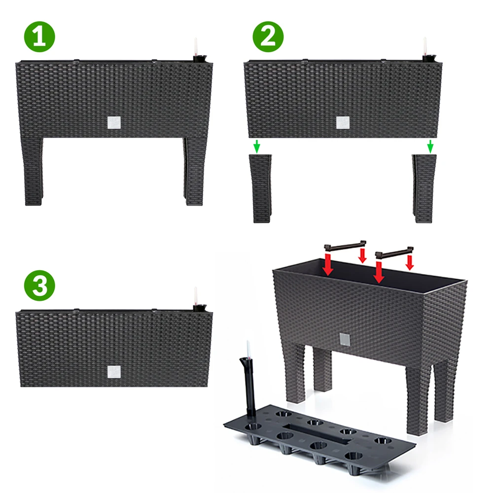 Das praktische Hochbeet in Polyrattan-Optik ist UV-lichtbeständig und wetterfest.