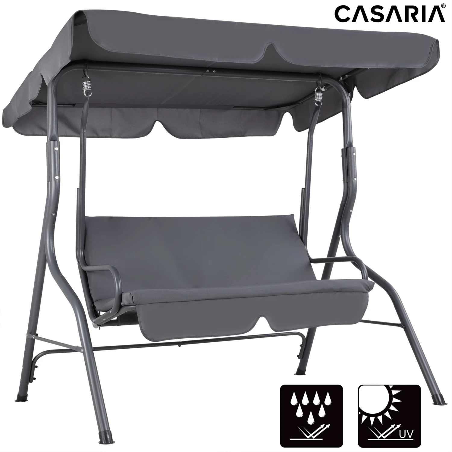 Die gemĂŒtliche Hollywoodschaukel der Marke CASARIA eignet sich hervorragend fĂŒr Garten, Terrasse und Balkon. Sie lĂ€dt zum gemĂŒtlichen Entspannen und Verweilen ein.