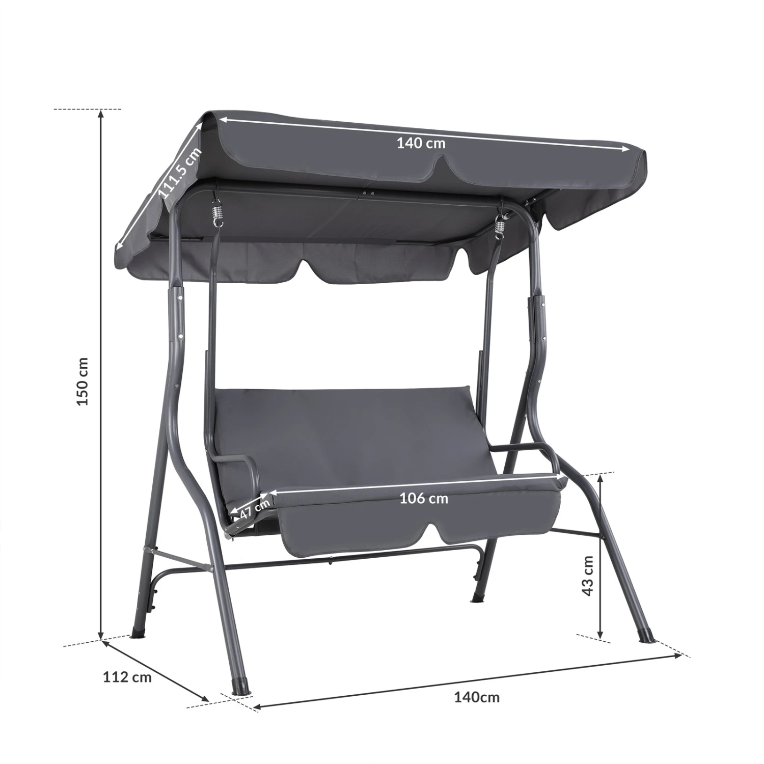 Das Polster sowie das Dach bestehen aus hochwertigem 600 x 300 D Oxford Stoff, der wasserabweisend und hervorragend fĂŒr den AuĂenbereich geeignet ist.