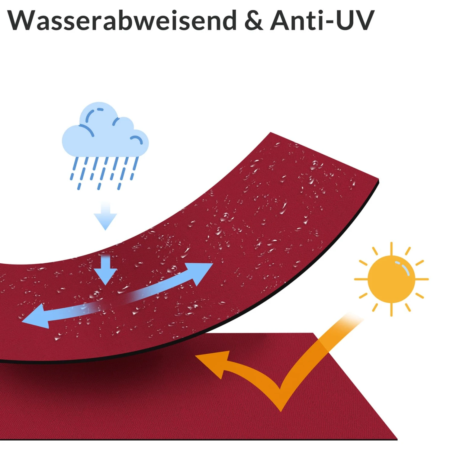 Das Polster sowie das Dach bestehen aus hochwertigem 600 x 300 D Oxford Stoff, der wasserabweisend und hervorragend fĂŒr den AuĂenbereich geeignet ist.
