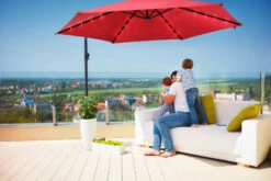 - 1 x Sonnenschirm mit Ständer und integrierter LED Beleuchtung + Solarpanel