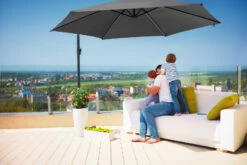 Genießen Sie tagsüber den angenehmen Schatten den der große Terrassenschirm spendet und entspannen Sie sich an warmen Sommertagen im Garten, auf der Terrasse oder dem Balkon.