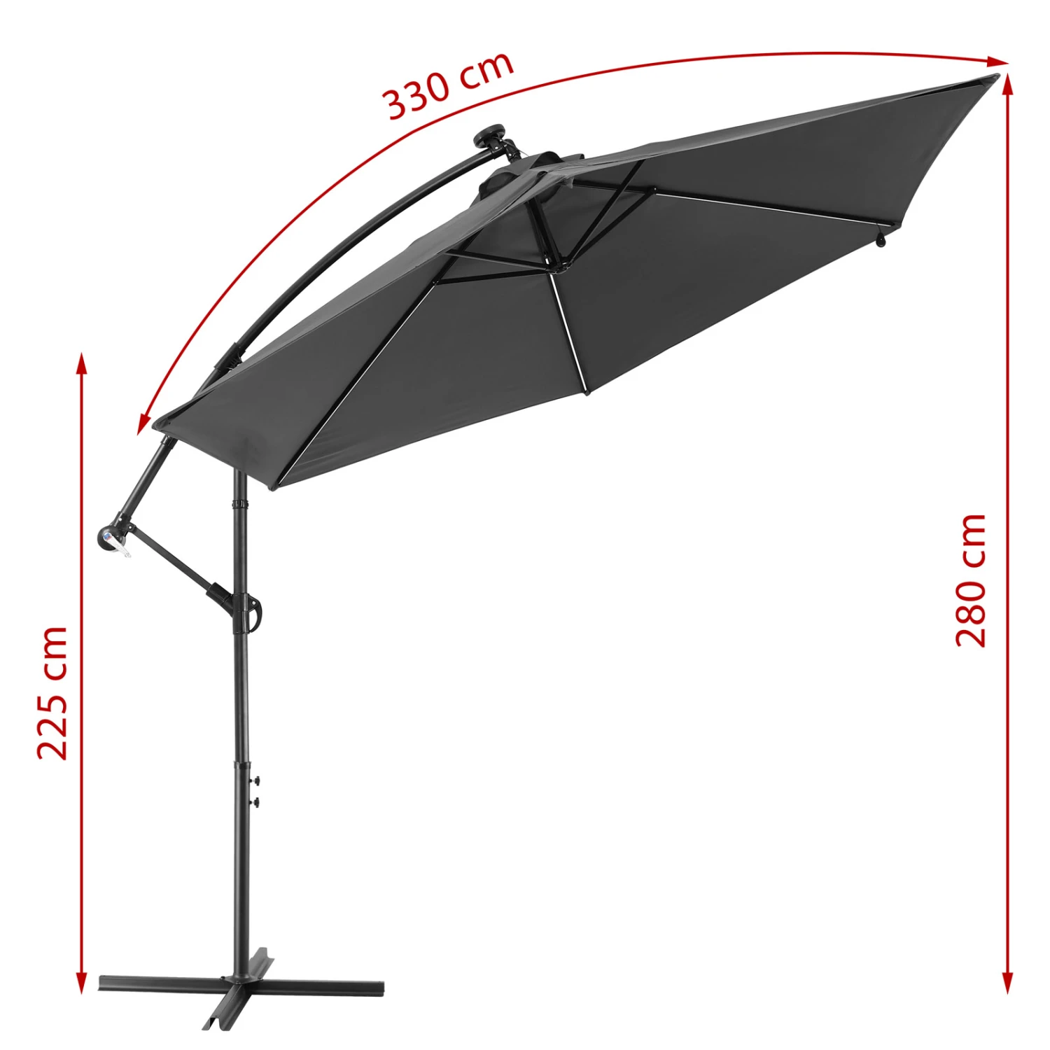 Den Strom für die LEDs liefert ein leistungsstarkes Solarpanel, das oben am Ampelschirm angebracht ist. Das Licht kann über einen kleinen und unauffälligen Schalter gesteuert werden.
