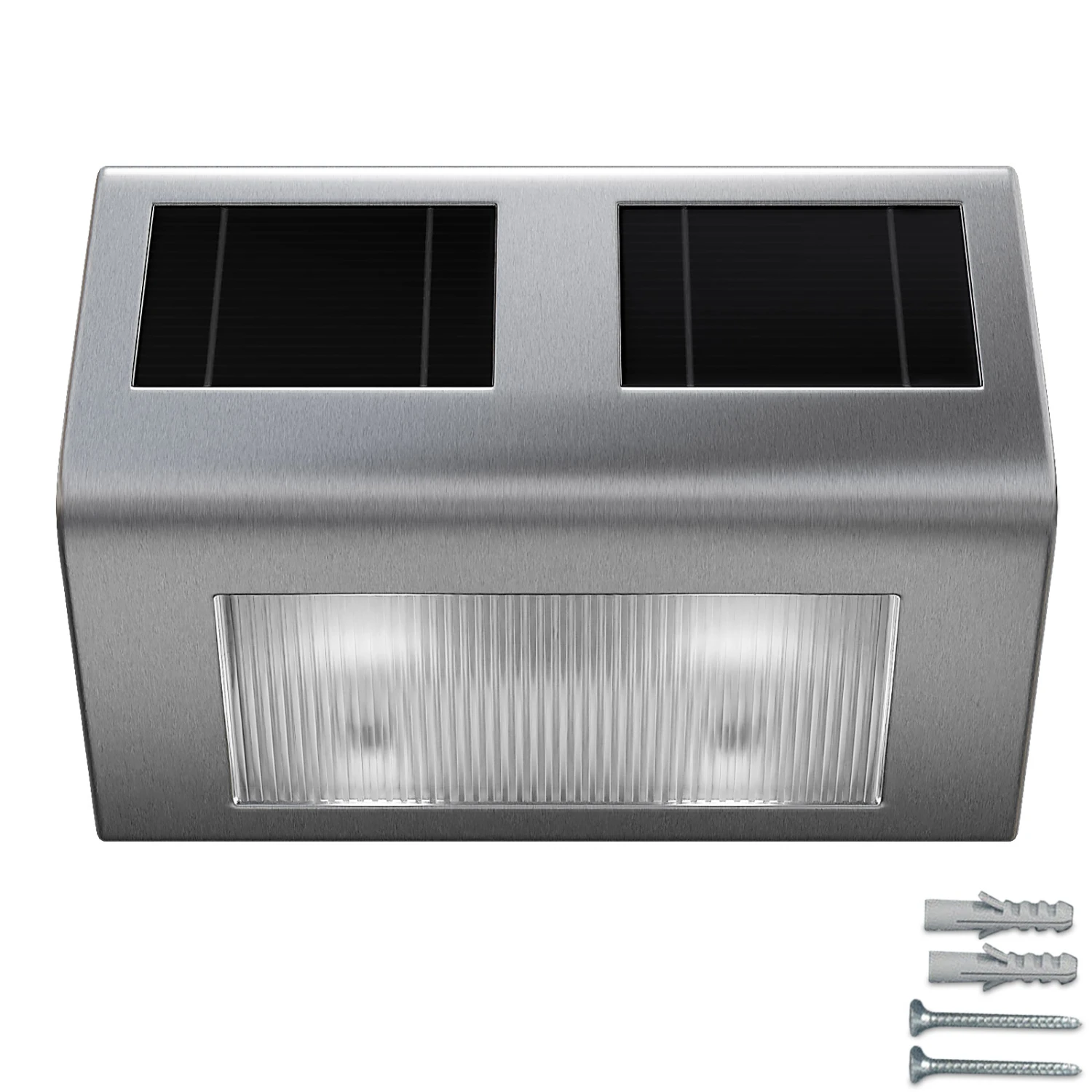 Die Edelstahl- Leuchte ist mit moderner Solartechnik und langlebigen LED’s ausgestattet. Die eingebaute Batterie wird am Tage durch Sonnenlichteinstrahlung auf das Solarpanel aufgeladen. Sobald es dämmert, schalten sich die LEDs automatisch ĂĽber einen eingebauten Dämmerungsschalter an.