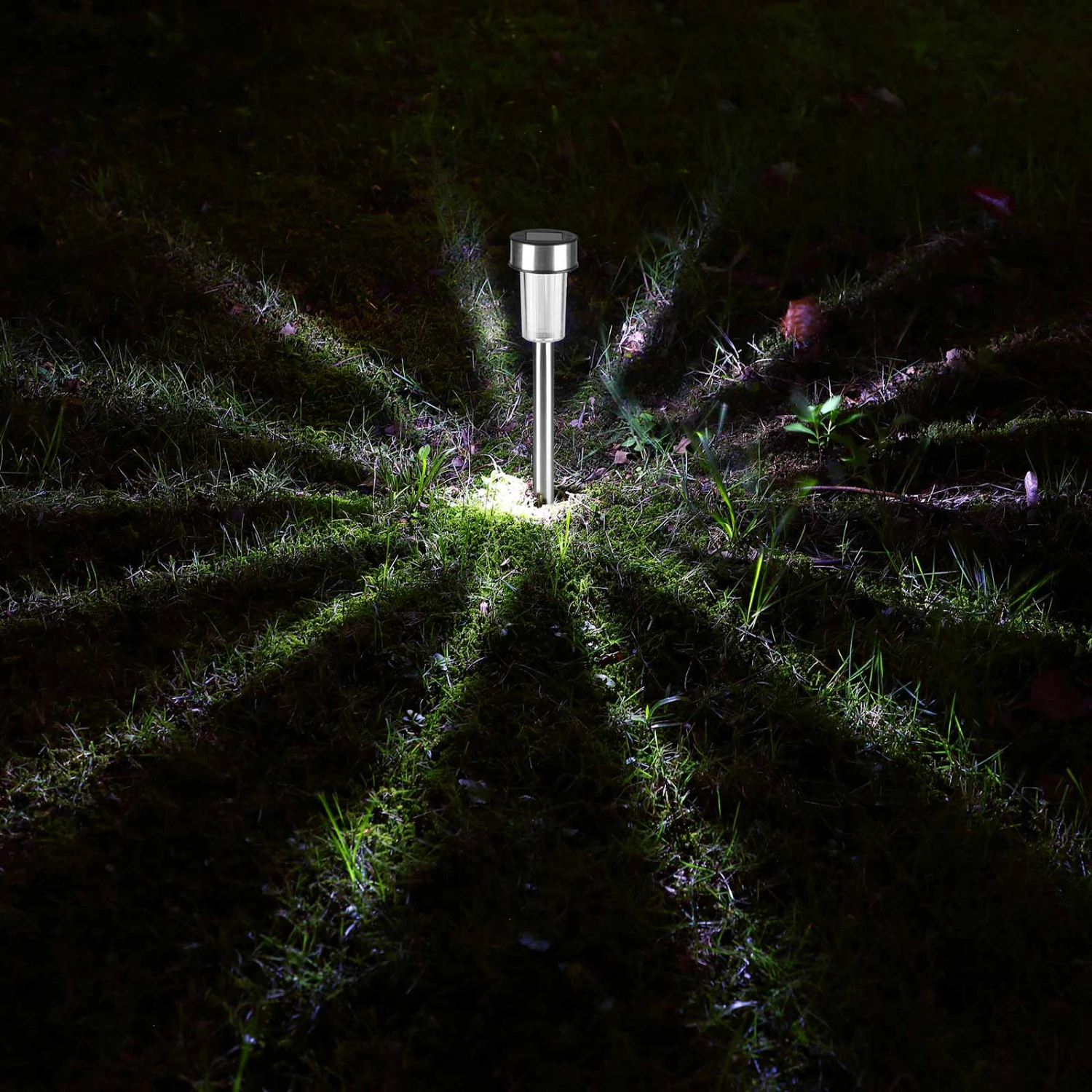 Das angenehm weiĂźe LED Licht sorgt fĂĽr eine stimmungsvolle Atmosphäre in Ihrem Garten. Durch den ErdspieĂź können Sie die Solarlampe kinderleicht in den Boden stecken und Akzente in Ihrem Garten, Terrasse oder Balkon setzen.Â