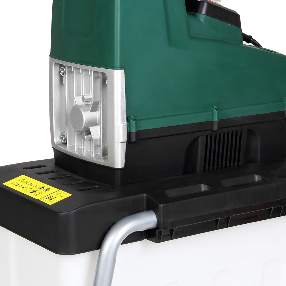 Der Ein-/Ausschalter ist mit einem Rückwärtslauf ausgestattet, wodurch sich eventuelle Blockierungen leicht beheben lassen. Entspanntes Arbeiten wird durch den abnehmbaren Einfülltrichter & gleichmäßigen Selbsteinzug Simpel gemacht – ebenso einfach ist der Transport, der durch das geringe Eigengewicht von nur 20 kg und angebrachten Rädern einfach und rückenschonend gestaltet ist. Der Gartenhäcksler ist besonders effektiv, wenn Sie hartes Holz und Äste häckseln wollen.