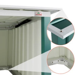 Die Trapez-Form der Metallplatten sorgt für eine optimale Wandstabilität. Zusätzliche Bodenleisten, Metallwinkel und 4 massive Erdnägel erhöhen die Stabilität und schützen die Garage vor Sturmwind. Durch die hochwertige Verzinkung ist der Unterstand äußerst resistent gegen Kälte und Rost.