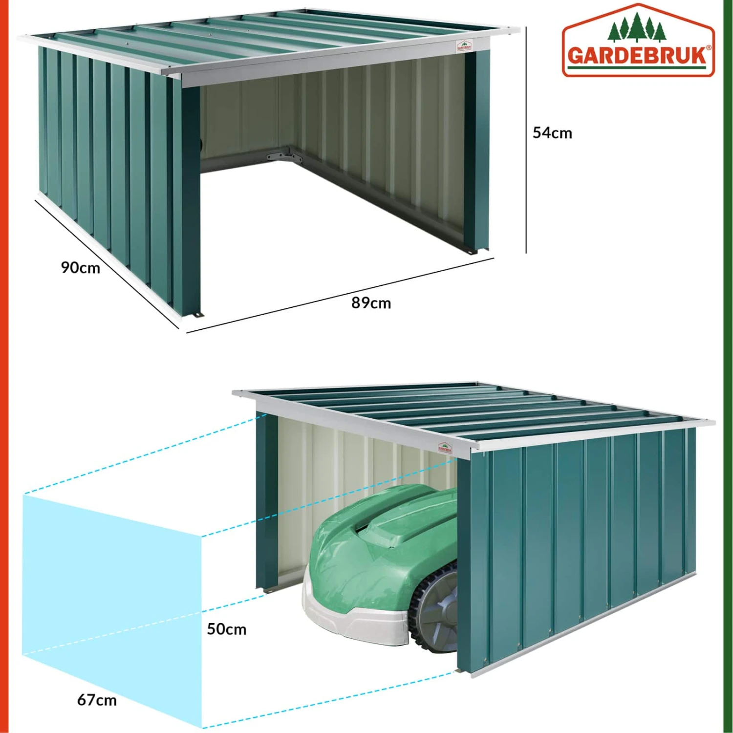 Die edle Mähroboter Garage mit Satteldach von Gardebruk® ist der perfekte Unterstand für ihren Mähroboter. Die Garage ist durch ihr hochwertiges Material aus feuerverzinktem Stahlblech und verzinktem Stahlrahmen mit UV-geschützter Lackierung ein langlebiges Zuhause für ihren fahrenden Rasenmäher.