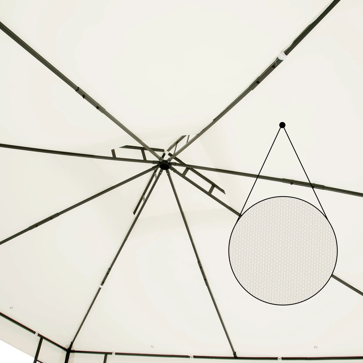 Der Gartenpavillon ist mit stabilen Dachstreben und verkleideten Standfüßen ausgestattet. Die Pulverbeschichtung der Metallkonstruktion bietet Schutz vor Korrosion, damit Sie lange Freude an Ihrem Gartenzelt haben.