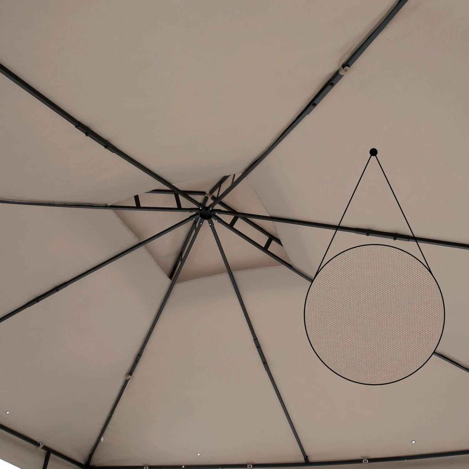 Der Gartenpavillon ist mit stabilen Dachstreben und verkleideten Standfüßen ausgestattet. Die Pulverbeschichtung der Metallkonstruktion bietet Schutz vor Korrosion, damit Sie lange Freude an Ihrem Gartenzelt haben.