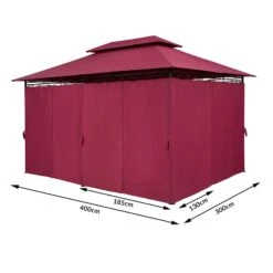 Der Gartenpavillon ist mit stabilen Dachstreben und verkleideten Standfüßen ausgestattet. Die Pulverbeschichtung der Metallkonstruktion bietet Schutz vor Korrosion. So haben Sie lange Freude an Ihrem Gartenzelt.