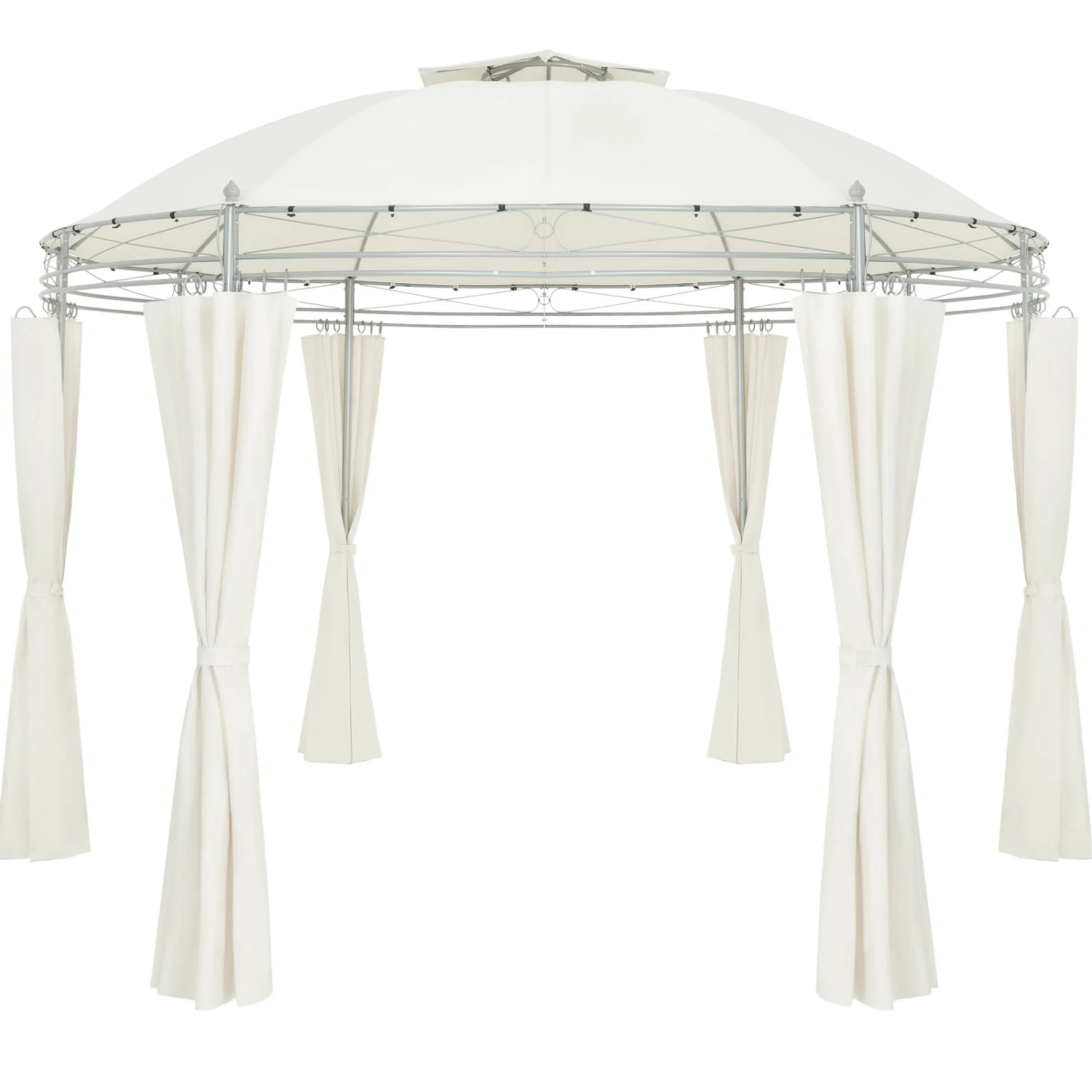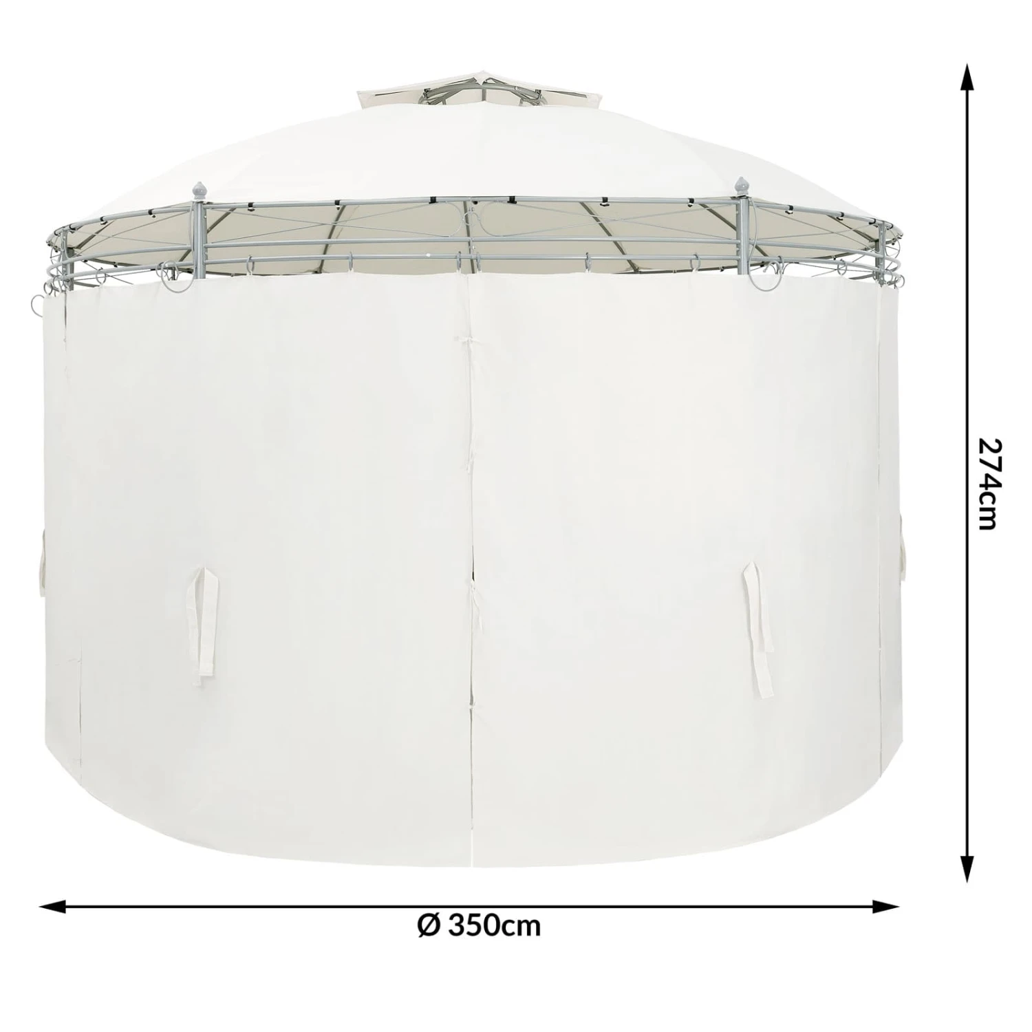Die Seitenteile können über Ringaufhängungen geöffnet oder geschlossen werden und die Dachhaube des Partyzelts sorgt für optimale Luftzirkulation im Inneren des Pavillons.