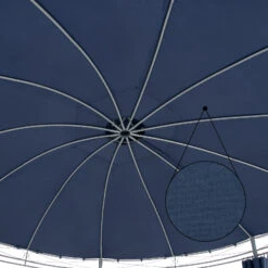 Die Seitenteile können über Ringaufhängungen geöffnet oder geschlossen werden und die Dachhaube des Partyzelts sorgt für optimale Luftzirkulation im Inneren des Pavillons.