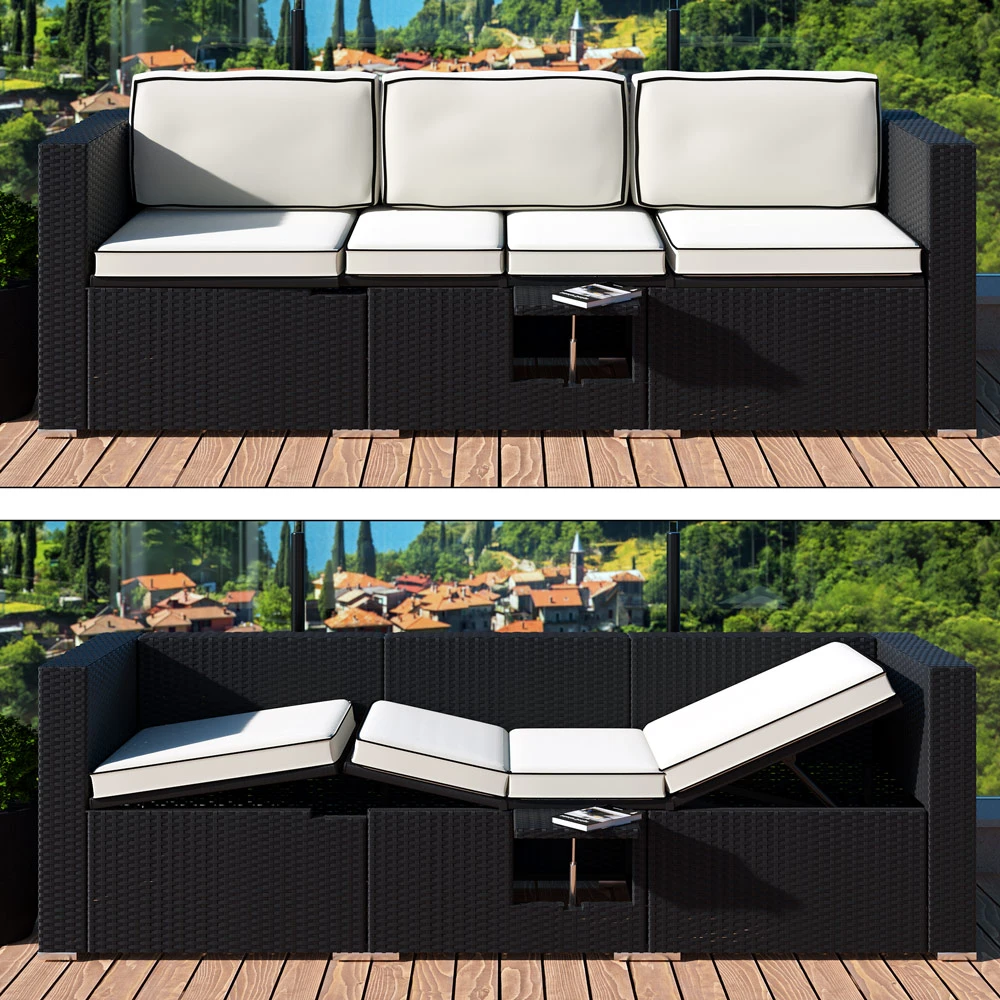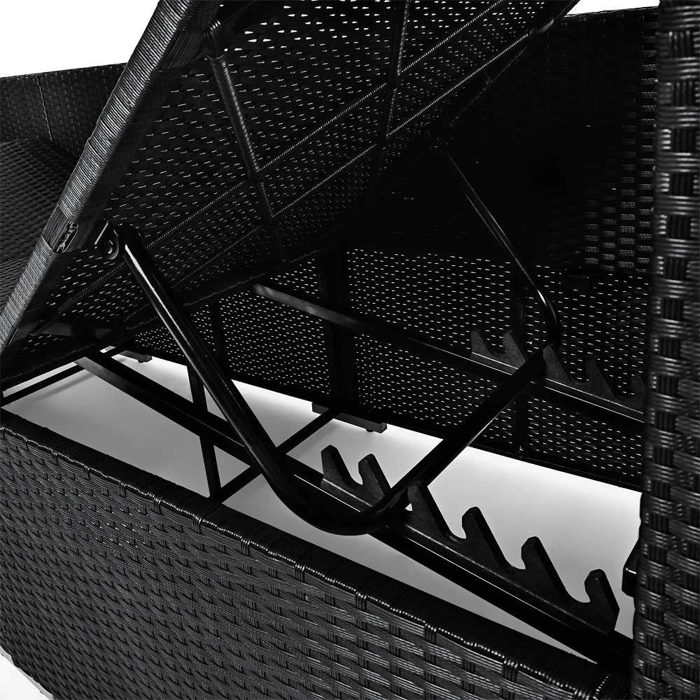 Die Poly Rattanlounge mit pulverbeschichtetem Stahlrahmen ist an den Kopf- und Fußteilen über stabile Doppelträger 5-fach höhenverstellbar. Die Liegefläche ist über 4 Segmente individuell verstellbar.