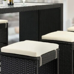Das Geflecht der Sitzgruppe aus Polyrattan wurde extra fĂŒr Gartenmöbel entwickelt. Es ist wetterfest, UV-lichtbestĂ€ndig, schmutzabweisend und einfach zu reinigen.