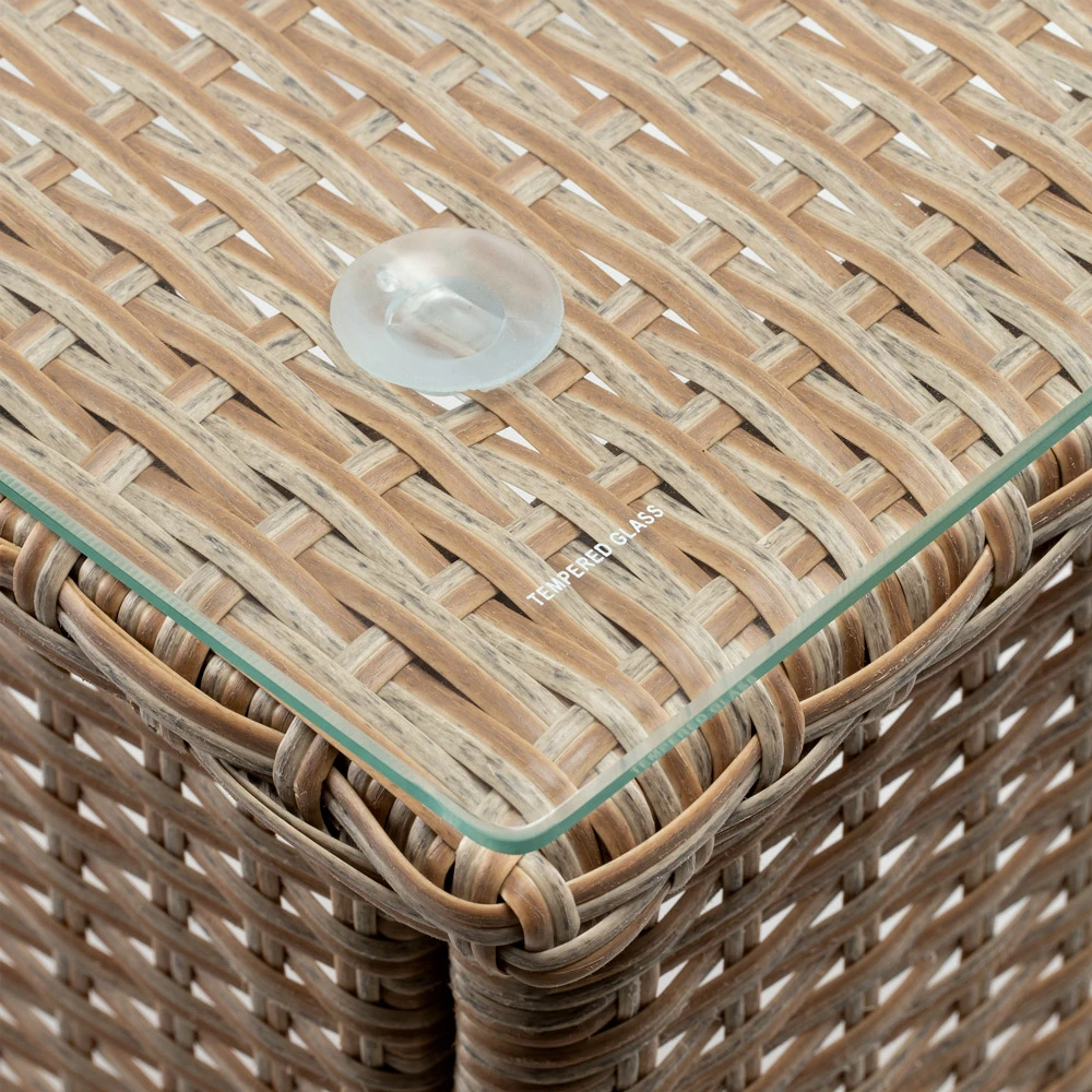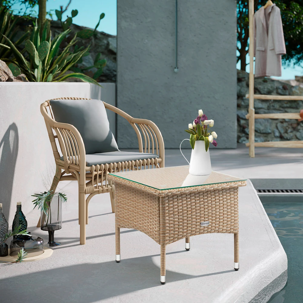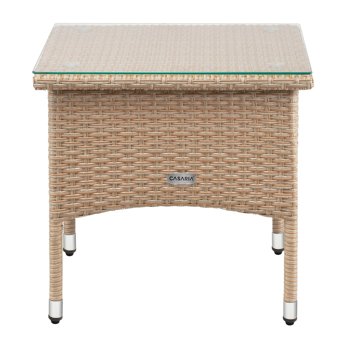 Ansprechender Polyrattan Beistelltisch verleiht Ihrem Wohnambiente einen ganz besonderen Flair. Ausgestattet mit einer hochwertigen Glasplatte bietet der Tisch reichlich Platz und ist leicht zu reinigen.