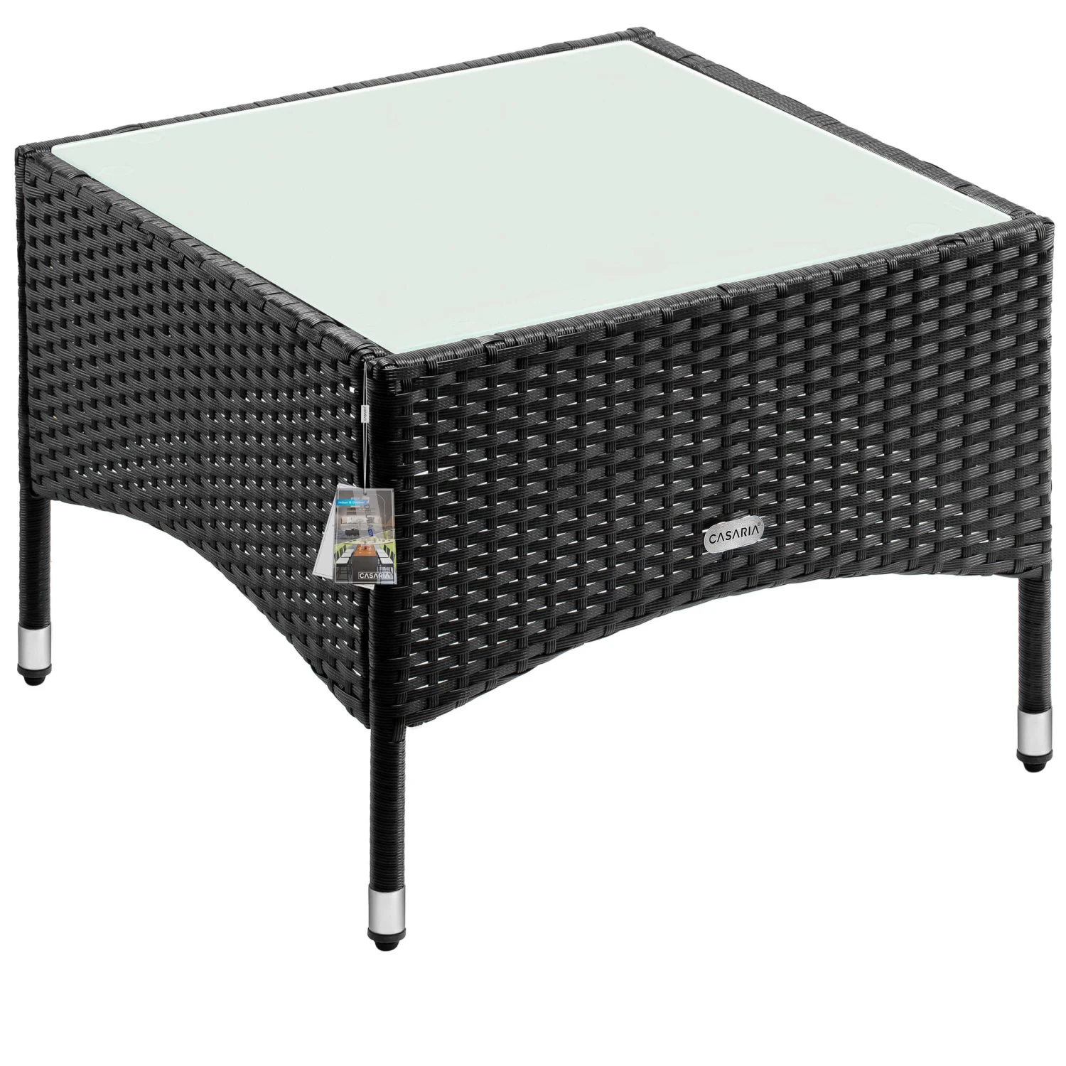 Der ansprechende Polyrattan Beistelltisch verleiht Ihrem Wohnambiente ein ganz besonderes Flair. Ausgestattet mit einer hochwertigen Glasplatte bietet der Tisch reichlich Platz und ist leicht zu reinigen. Der Tisch ist aus UV-lichtbeständigem Polyrattan – an diesem Tisch werden Sie lange Freude haben.