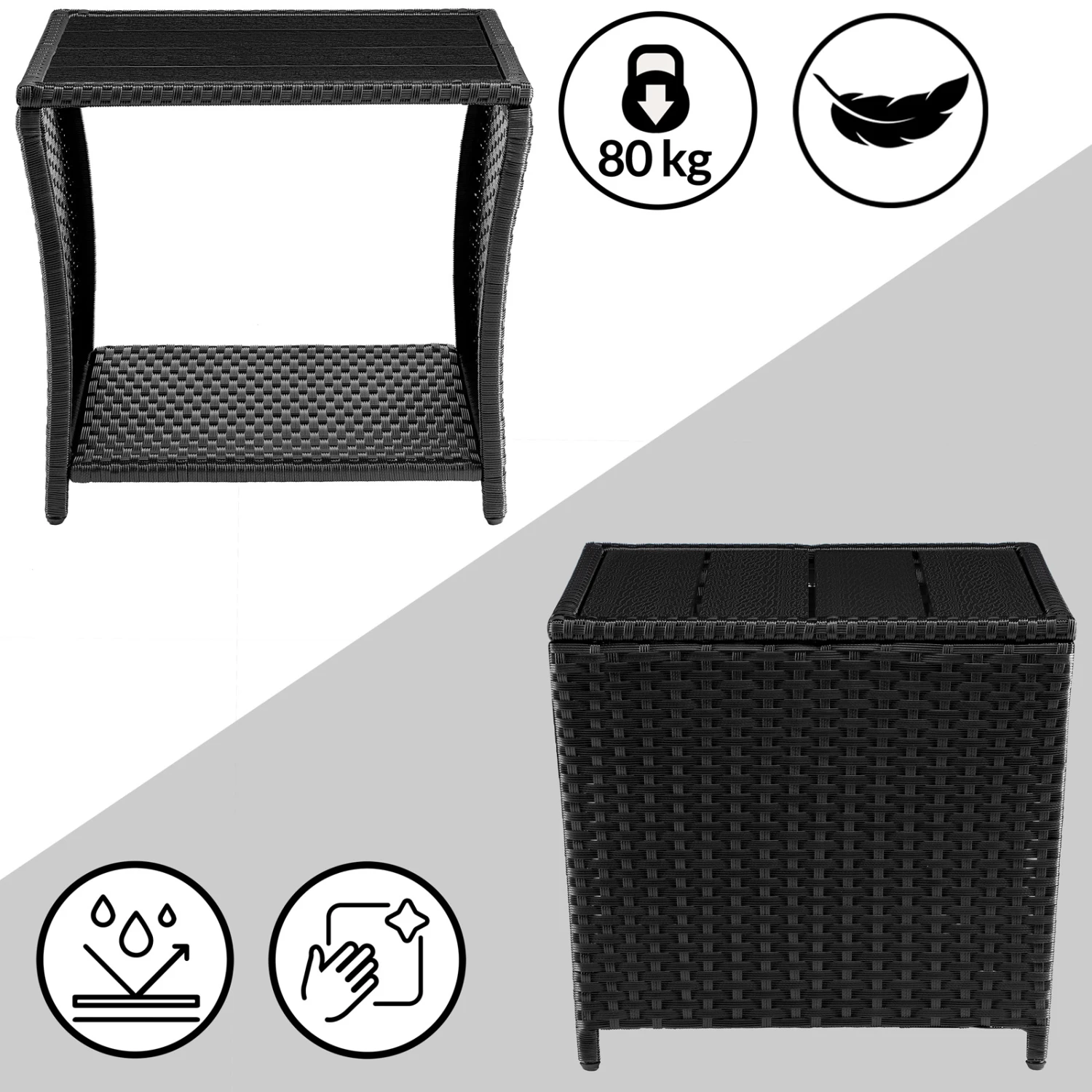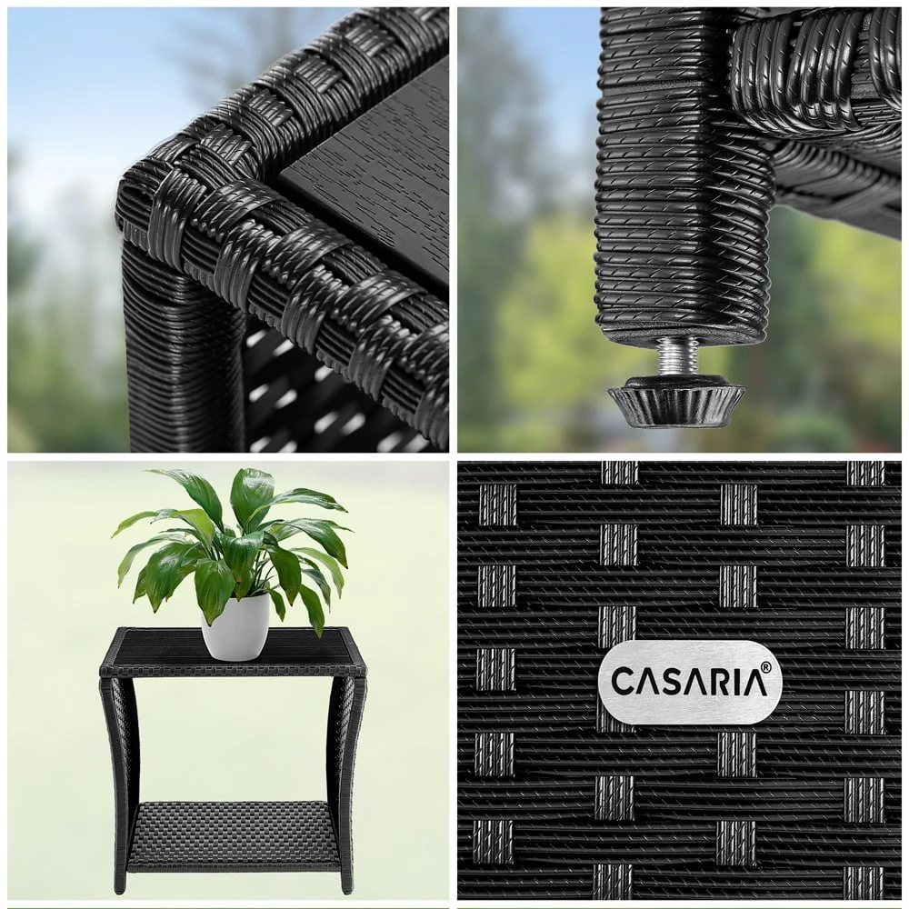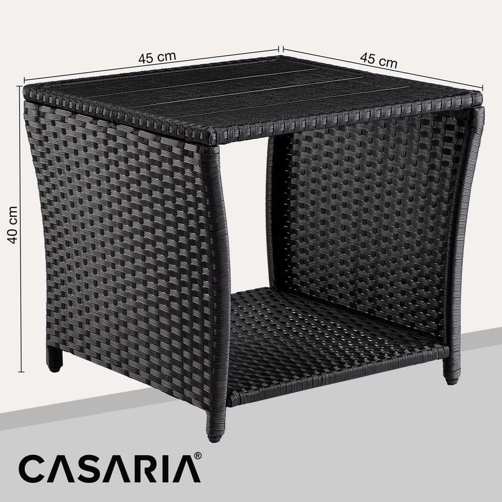 Der praktische Polyrattan Beistelltisch von CasariaŸ ist die ideale ErgĂ€nzung fĂŒr Ihr Zuhause. Egal, ob als Ablagemöglichkeit in der NĂ€he einer Sonnenliege oder einer Lounge-Ecke, als FuĂablage oder als PflanzenstĂ€nder, der Tisch ist stets ein Highlight. Dank des stilvollen Designs ist der Tisch ideal kombinierbar.