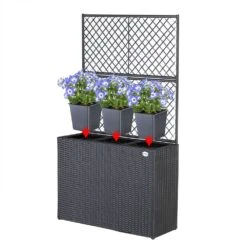 - 1 x 3er Polyrattan Pflanzkübel mit Rankgitter