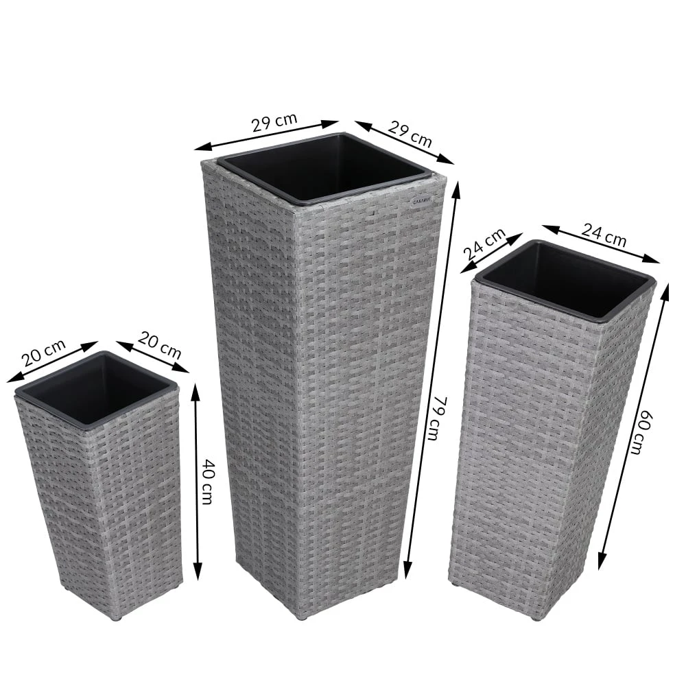 - 1 x 3er-Set Polyrattan PflanzkĂĽbel