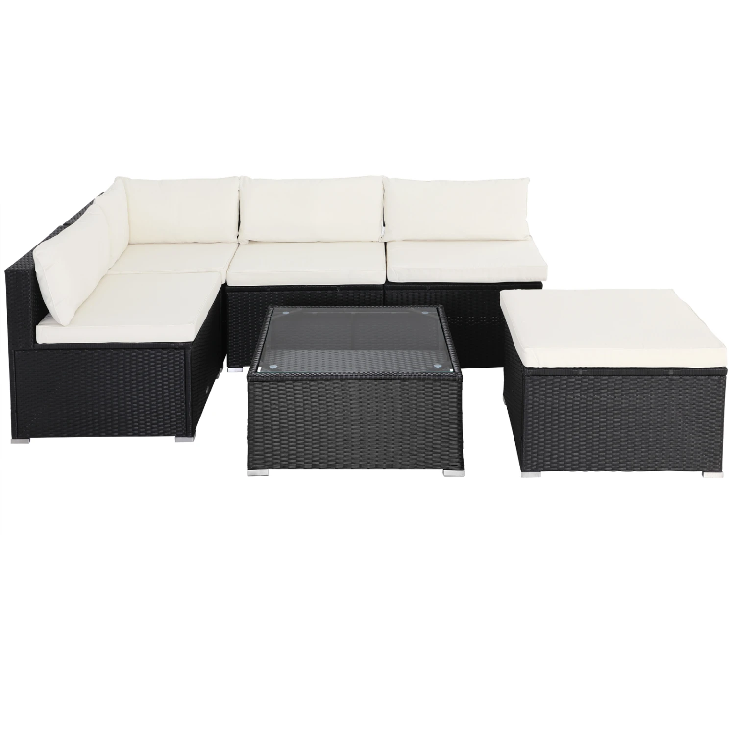 Jedes Element ist mit robusten Füßen ausgestattet, die zusätzlich für einen sicheren Stand auf Ihrer Terrasse sorgen. Um den Boden vor Kratzern zu schützen, sind die Füße mit zusätzlichen Plastikschonern ausgestattet. Die einzelnen Elemente des Sets können durch 6 Verbindungsclips miteinander verbunden werden.