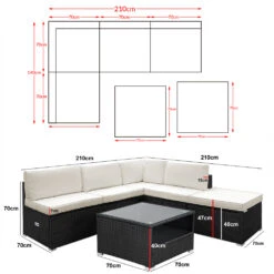- Maße Sitzgarnitur (LxBxH): 210 x 210 x 70 cm