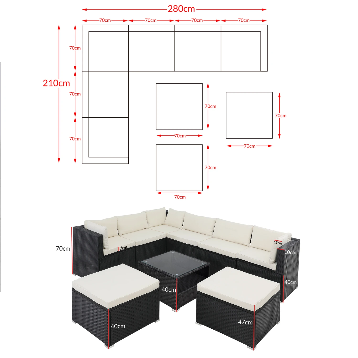 - Maße Sitzgarnitur (LxBxH): 280 x 210 x 70 cm